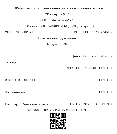 При оплате наличными или банковской картой выдаётся кассовый чек. По запросу предоставляем товарный чек.