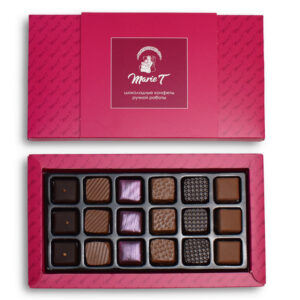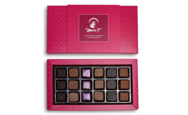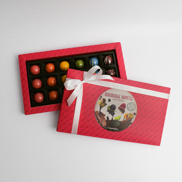 В наборе 18 конфет различных вкусов из коллекции Space, Classic или Flamme.